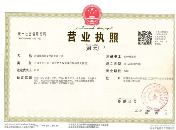 新疆驛通營業執照